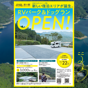 RVパークのご予約開始は11月5日(水曜日)から、外部予約サイト「RV-Park.jp」で予約が可能となります。